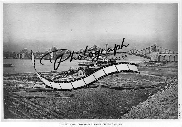 Title: The St. Louis Bridge: Erection of west and center arches. View looking northeast