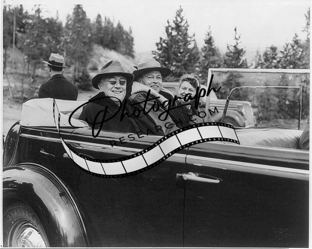 Franklin D. Roosevelt,1882-1945,in open car,Eleanor,Yellowstone Park official