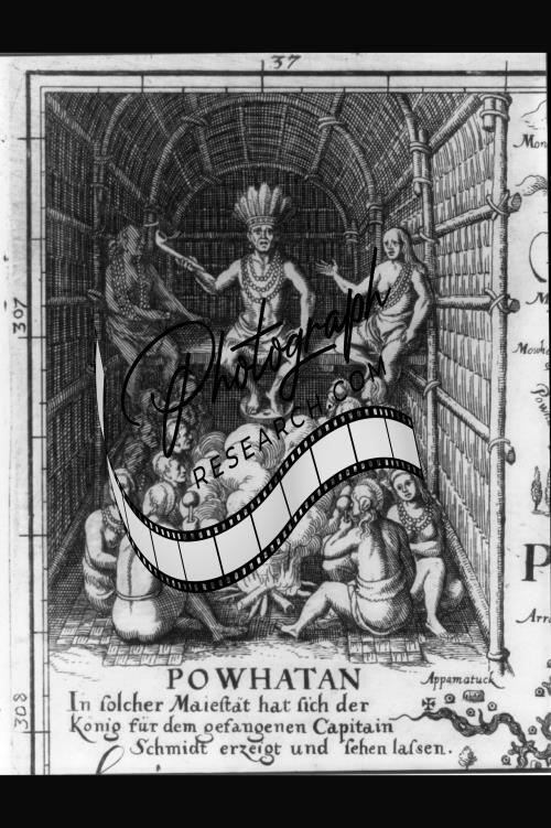 Photo of Detail,Map of Virginia,1612,Powhatan in royal wigwam,crown of feathers