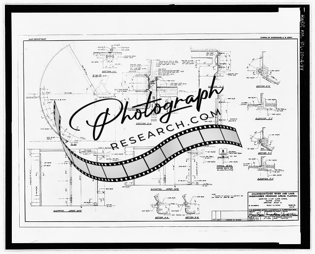 Title: Lock No. 1- St. Lucie Canal. Sector gates, vertical struts- lower gate - St. Lucie Canal, St. Lucie Lock No. 1, St. Lucie, Cross State Canal, Okeechobee Intracoastal Waterway, Stuart, Martin County, FL