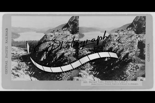 Donner Lake,Tunnels No. 7,8 from Summit Tunnel,eastern summit in distance,c1865