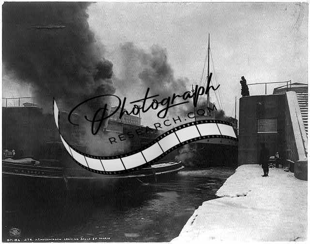 Steamer J.T. Hutchinson leaving Sault St. Marie,Michigan,MI,c1909,ship,snow