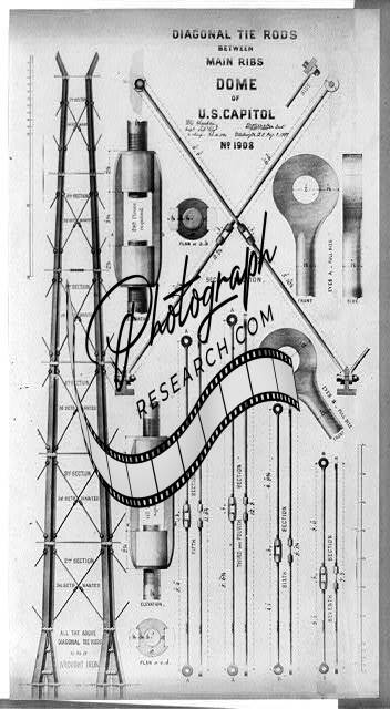 Diagonal tie rods between main ribs,dome of U.S. Capitol,Washington,DC,c1855