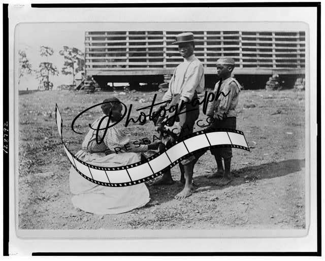 Method of Milking,Liberia,Africa,Boys holding a goat as a woman milks it,c1895