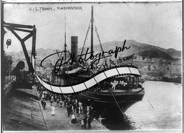 U.S. troop ship in Vladivostock,Primorsky,Russia,December 17,c1918,US Flag