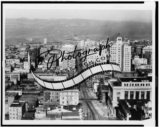 San Francisco business district,buildings,mountains,streets,California,CA,c1922
