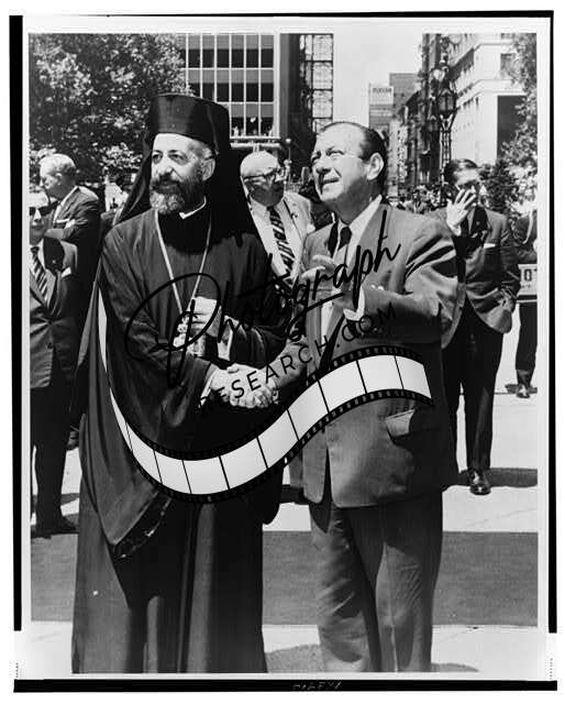 Mayor Wagner greets Archbishop Makarios,City Hall,New York City,NYC,1962