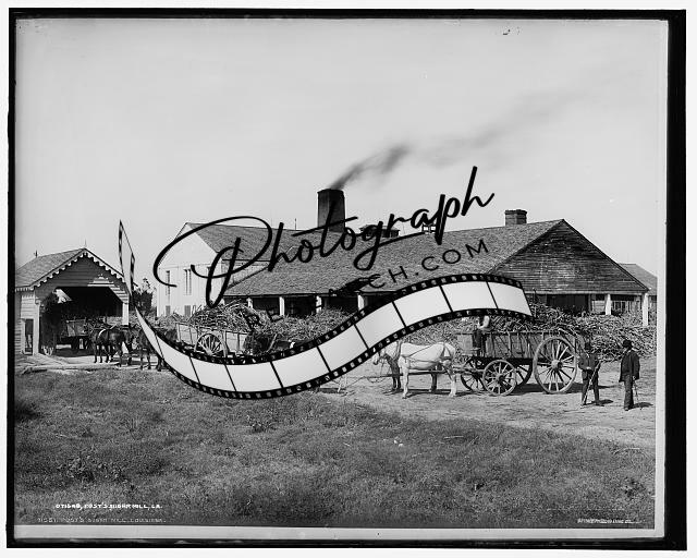 Post's sugar mill,industry,industrial facilities,carts,wagons,Louisiana,LA,c1900
