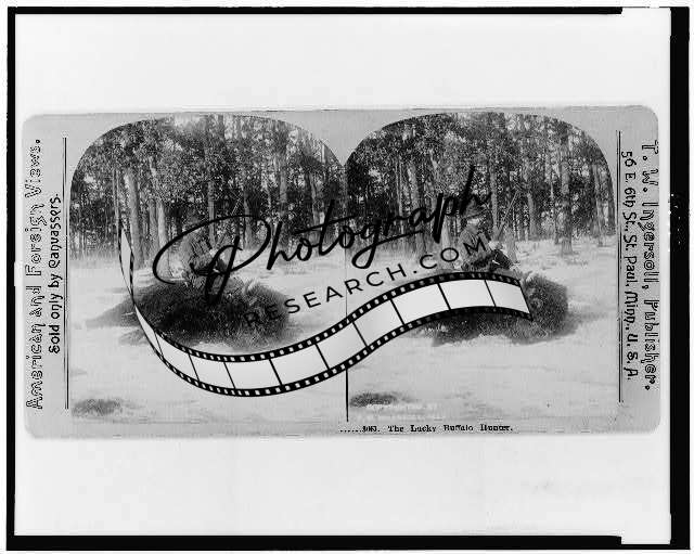 Photo of Stereograph,The Lucky Buffalo Hunter,Bison Hunting,Animal,c1898,Snow