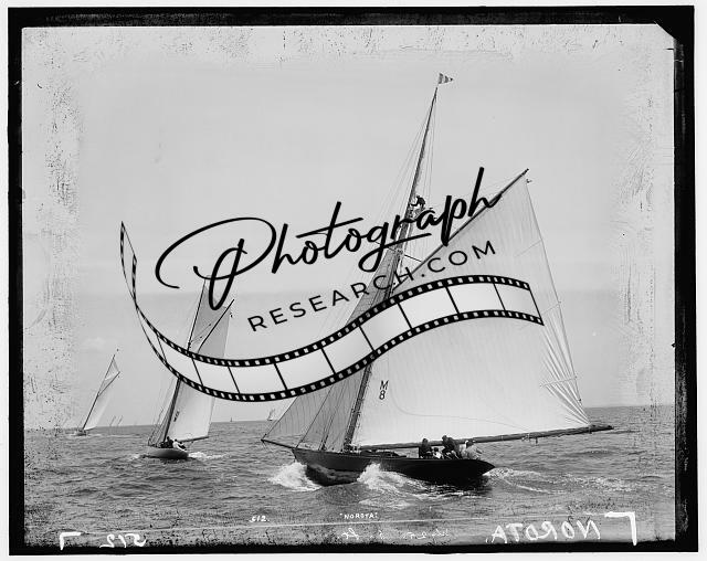 Boat on far right unidentified; title names boats from right to left; probably Atlantic Yacht Club.