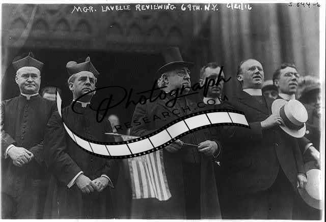 Mgr. Lavelle holding U.S. flag reviewing 69th Regiment,N.Y.,American Flag,1916