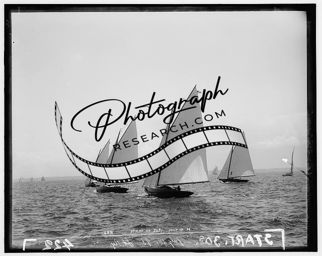 Start,Larchmont,Nora,regattas,yachts,water vessels,boats,ships,sailing,1895