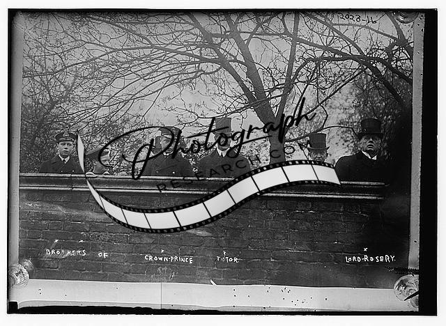Brothers of Crown Prince Tutor,Lord Rosery. Standing behind a wall.,top hat