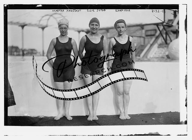Martha Hagstadt,Elsie Sutan,Edna Cole,Swimmers,Bathing Suits,1910-1915
