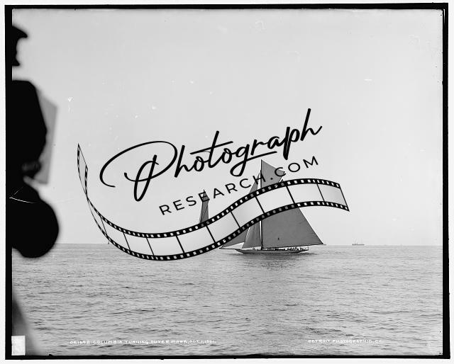 Columbia turning outer mark,Shamrock II behind,America's Cup races,regattas,1901