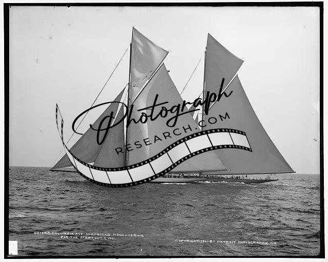 Columbia,Shamrock II maneuvering for start,America's Cup races,regattas,c1901