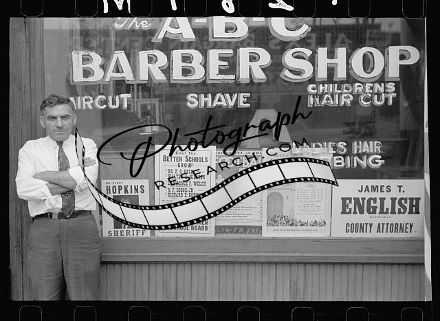 Barber,shop,South Omaha,Nebraska,NE,November 1938,John Vachon,FSA,United States