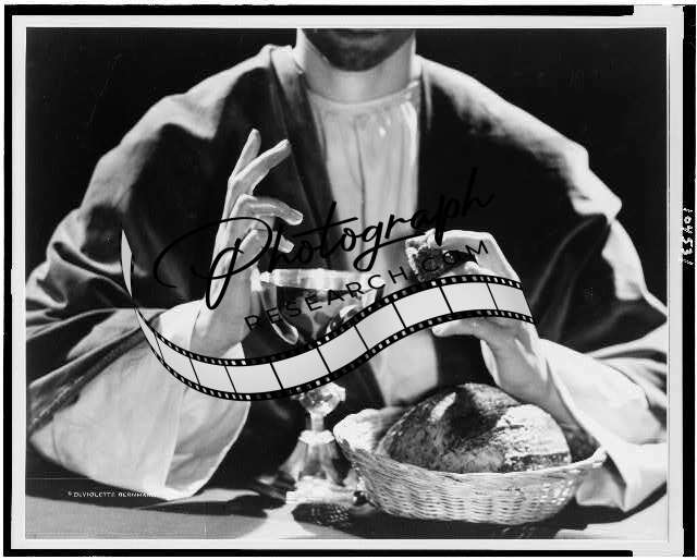 This is my body,broken for you,I Cor 11:24,priest,communion chalice,bread,c1958