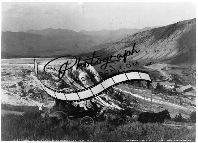 Jupiter Terrace,Yellowstone National Park,c1905,Stagecoach,Valley,Poeple