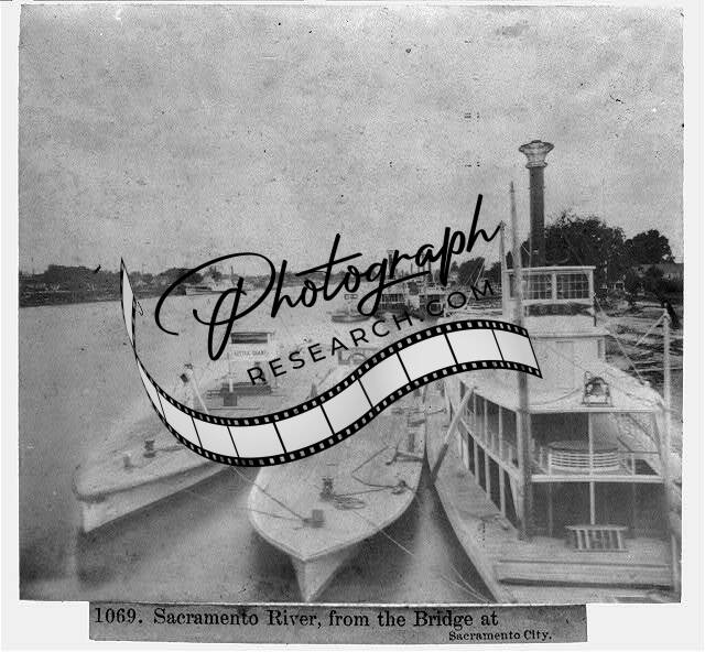 Sacramento River from the bridge at Sacramento City,California,CA,1866,boats