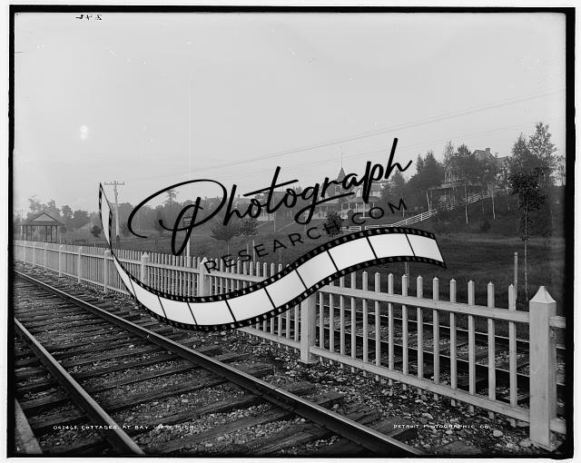 Cottages,railroad tracks,fences,dwellings,homes,houses,Bay View,Michigan,MI,1900