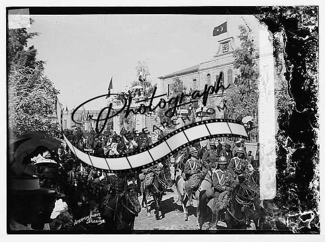 Title: State visit to Jerusalem of Wilhelm II of Germany in 1898. Arab lancers in street procession.