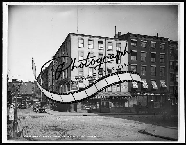 Fraunce's Tavern,inns,buildings,roads,carts,Broad,Pearl Streets,New York,NY,1890
