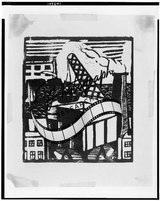 Structure,crane,smokestack,water,background,hoisting machinery,buildings,1933