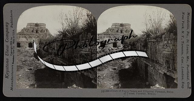 Court of Nun's Palace and Elliptical Pyramid, Ruins of Uxmal, Yucatan, Mexico