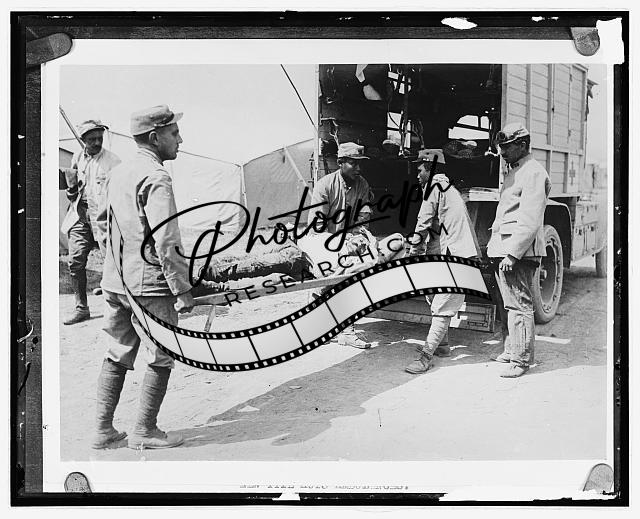 Man being carried on stretcher,Injured,National Photo Company,c1920