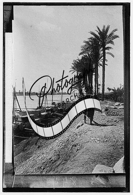 Nile River,Cairo,Egypt,Egyptian Views,Palm Trees,Boat,1900-1920