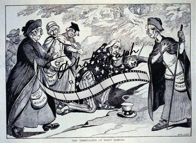 The temptation of Saint Samuel,c1913,Uncle Sam,Constitution,votes for women