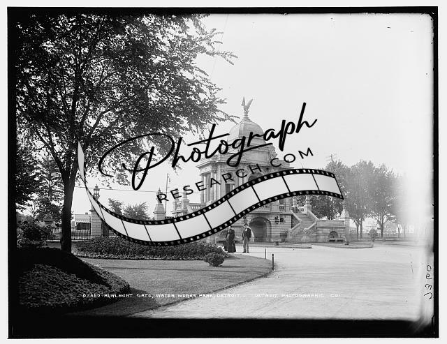 Hurlbut Gate,statues,sculpture,domes,Water Works Park,Detroit,Michigan,MI,1890