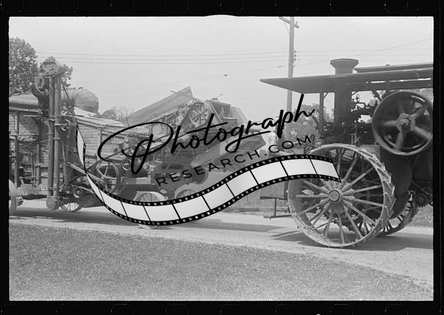 Title: Steam thresher. These machines move from job to job under their own power, central Ohio