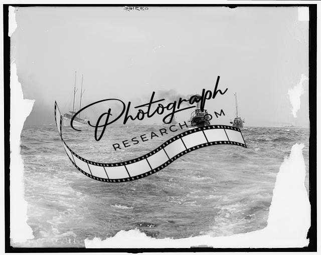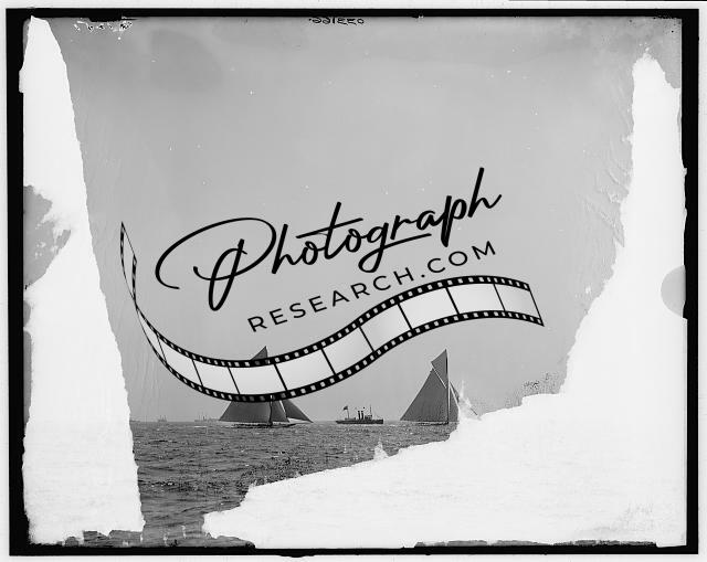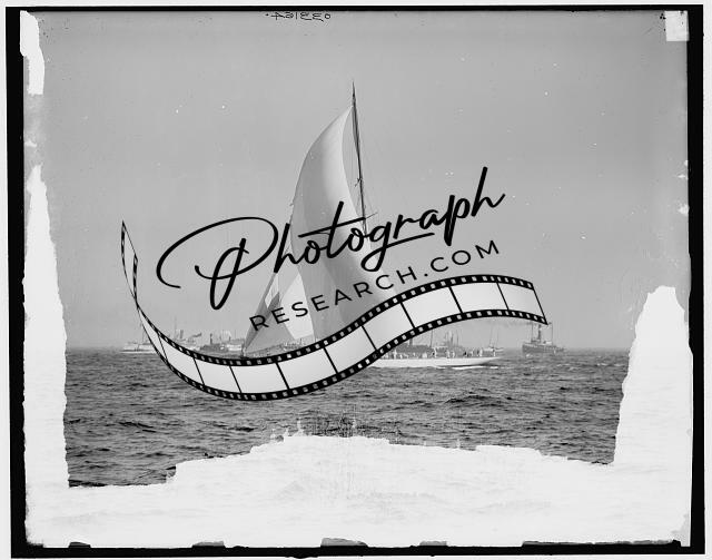 Following yachts,outer mark,steam,America's Cup races,regattas,boats,ships,1903