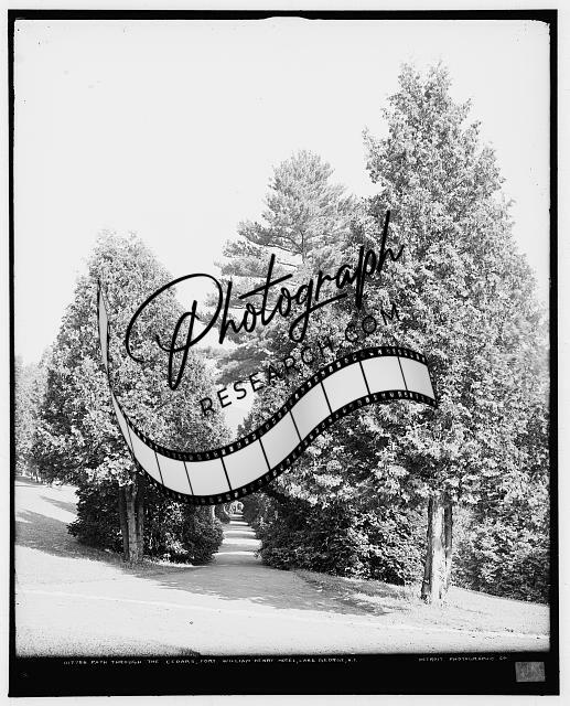 Half through cedars,trees,Fort William Henry Hotel,Lake George,New York,NY,1900