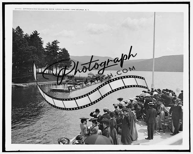 Approaching Sagamore Dock,wharves,Green Island,Lake George,New York,NY,c1904