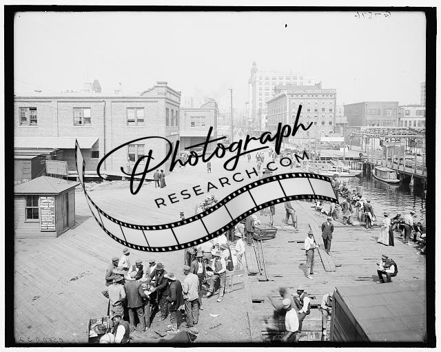 Lunch hour,levee,longshoremen,eating,docks,piers,Jacksonville,Florida,FL,1900