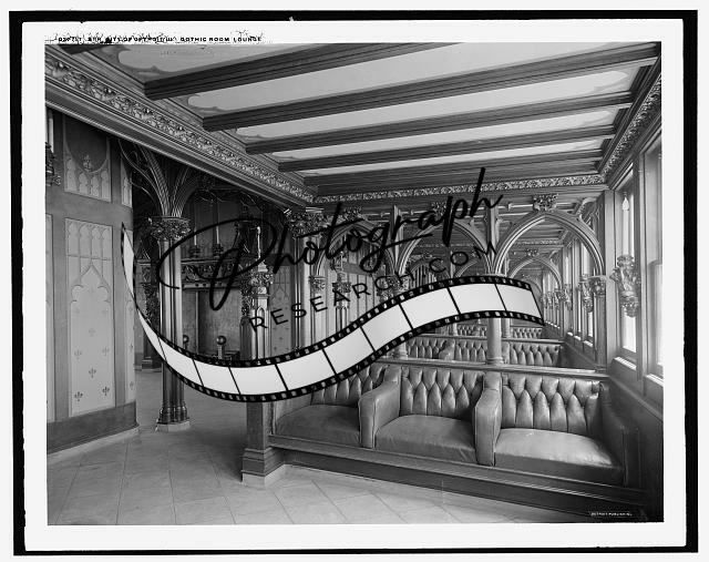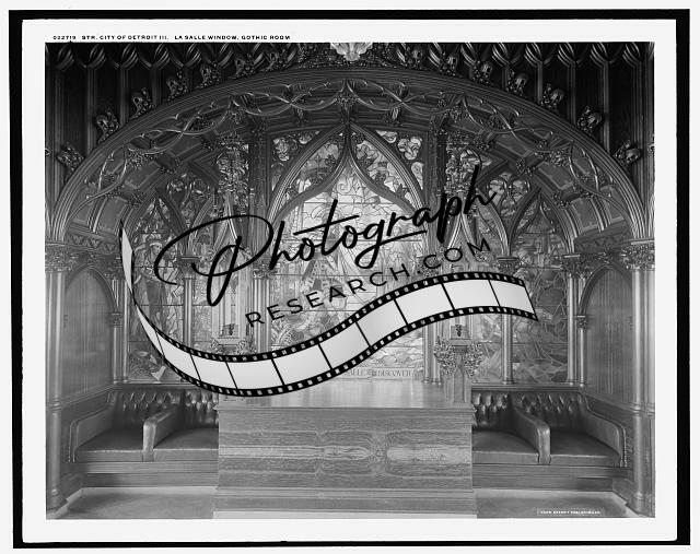Steamer City,Detroit III,ceiling decoration,boat,LaSalle window,Gothic room,1912