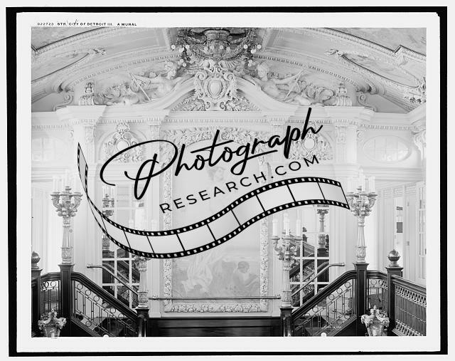 Steamer City,Detroit III,ceiling decoration,boats,ships,mural gallery deck,1912