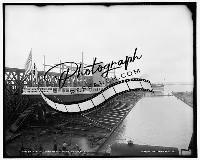 Steamer Columbia,ways,boats,ship industry,docks,piers,Wyandotte,Michigan,MI,1902 1