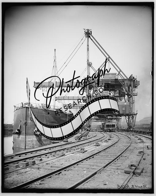 Brown electric hoist unloading freighter Constitution,Cleveland,Ohio,OH,1900
