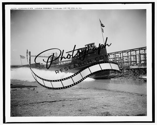 Launching,Steamer Lucius W Robinson,splash,cargo ships,Wyandotte,Michigan,1912