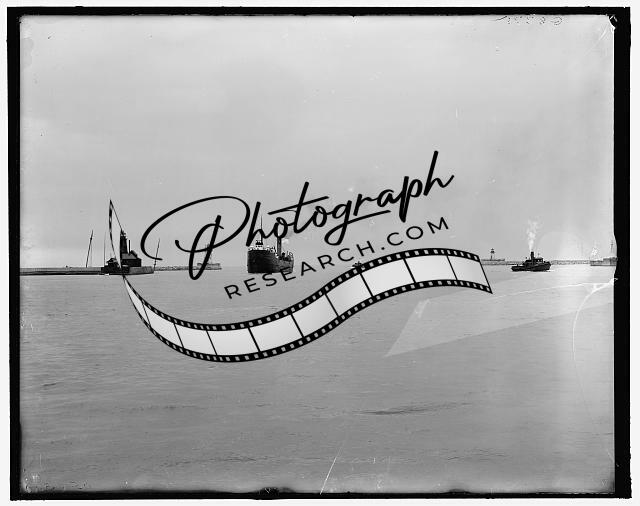 Entrance,harbor,lighthouses,Lake Erie,water bodies,boats,Cleveland,Ohio,OH,1900
