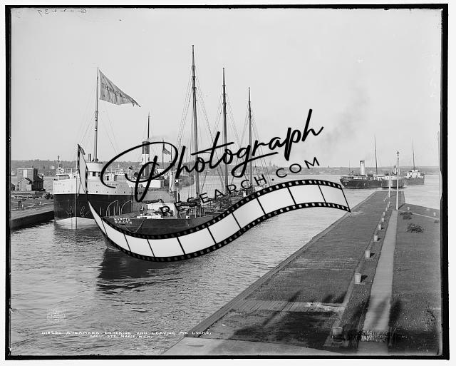 Steamers entering,boats,leaving Poe Locks,Sault Stephen Marie,Michigan,MI,c1905