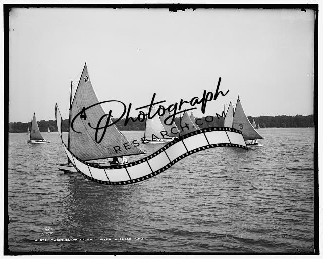 Yachting,Detroit River,close finish,sailboats,regattas,Michigan,Ontario,c1905