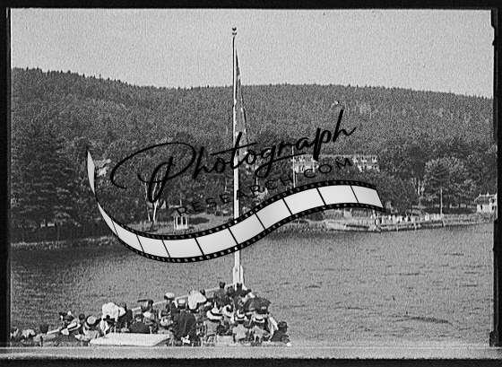 Passengers,resorts,boat approaching Hotel Marion,Lake George,New York,NY,1900
