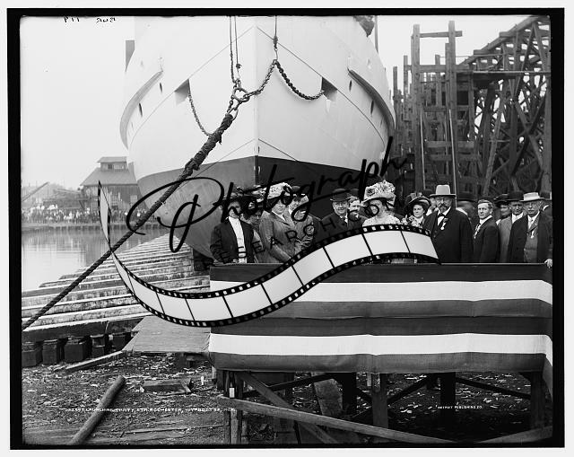 Launching party,Steamer Rochester,boats,ships,crowds,Wyandotte,Michigan,MI,1910 1
