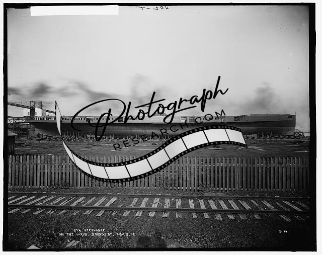 Steamer Seeandbee,ways,broadside,side wheeler,fences,Wyandotte,Michigan,MI,1912