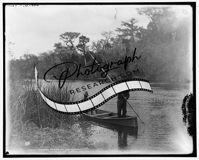 Spearing fish,boats,Oklawaha River,Florida,FL,Detroit Publishing Company,c1902